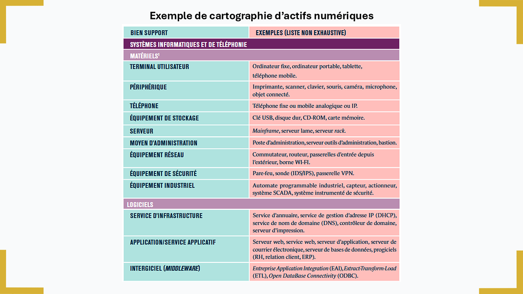 (PROJET DE TRANSPOSITION FRANCE) Le projet de loi ayant posé l'obligation de réaliser une analyse des dépendances vis-à-vis des fournisseurs et sous-traitants, veillez à identifier les actifs en lien avec des tiers dès l'étape de cartographie afin d'optimiser votre travail de cartographie.
